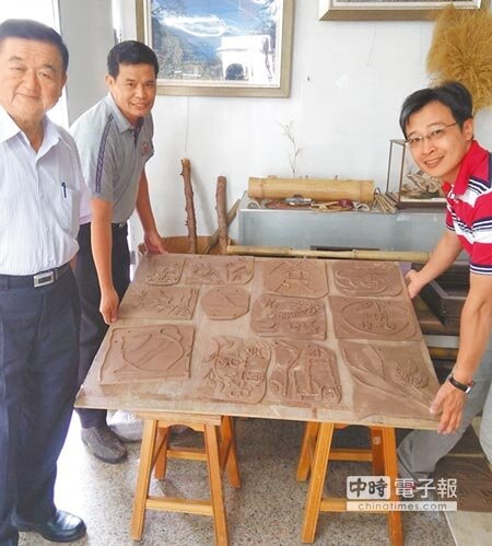 第一期近40戶參與陶板畫製作,佇立老街70年的雜貨店第3代老闆張世昌表示,他以酒甕、酒勺和現代化的飲料,帶出柑仔店販售模式的轉變;社區總幹事王明芳則期盼民眾仔細聆聽山林間各種動物的聲響,在板上刻出樂聲圖樣;村長嚴清雅則以家族伐木商標「合成」,紀念這段產業往事。
