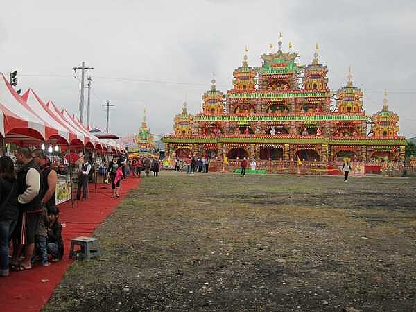 大溪月眉山觀音寺,從十一日起迄十四日止舉行廟成圓醮儀式,所搭蓋美輪美奐的醮壇已完成,極具壯觀。(記者陳寶印攝)