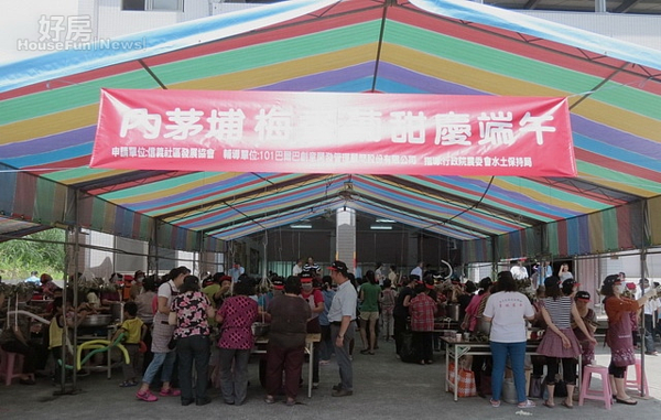 信義社區發展協會辦理梅香葡甜慶端節活動,好熱鬧的場面。(記者吳素珍攝)
