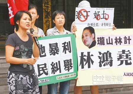 人民民主陣線得知林被檢方傳訊,昨天下午前往北檢門口「堵人」,要林鴻堯「踹共」,希望承辦檢察官要硬起來,嚴辦這種屢屢違法牟暴利的土豪,杜絕土豪炒地的歪風。