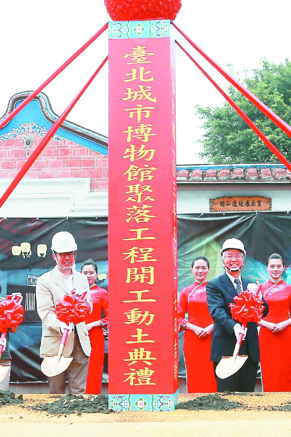 台北市副市長張金鶚(前右)與文化局長劉維公(前左)等人出席動土儀式。(記者林伯東/攝影)