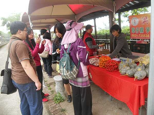一夥人下午來到社區發展協會理事長劉金湖所經營的酒堡庄,品嚐葡萄酒、酵素,並由劉金湖解說葡萄採收、製作葡萄酒的過程。並到吳家牧場及鐵山村的包公石參觀,途中劉金湖娓娓說出有關永豐社區的故事,每一樹木、每一個石頭都有它的故事,直到下午四點半,活動畫下休止符,快樂賦歸。