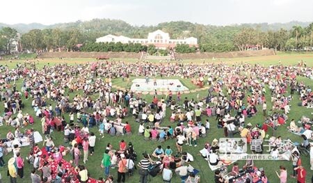 南投世界茶業博覽會「千人茶會」4日登場,380多個茶席羅列草地上,各家珍藏私房茶飄香,引來3000多人共飲茗茶(見右圖,廖志晃攝);南投縣長林明溱表示,茶博延續到11日,預估將吸引30萬名愛茶人士,歡迎大家到南投喝好茶。