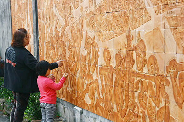圖說:百米藝術圍牆上,刻出鄂王社區百工技藝,代表行行出狀元。(圖/記者陳木隆攝)