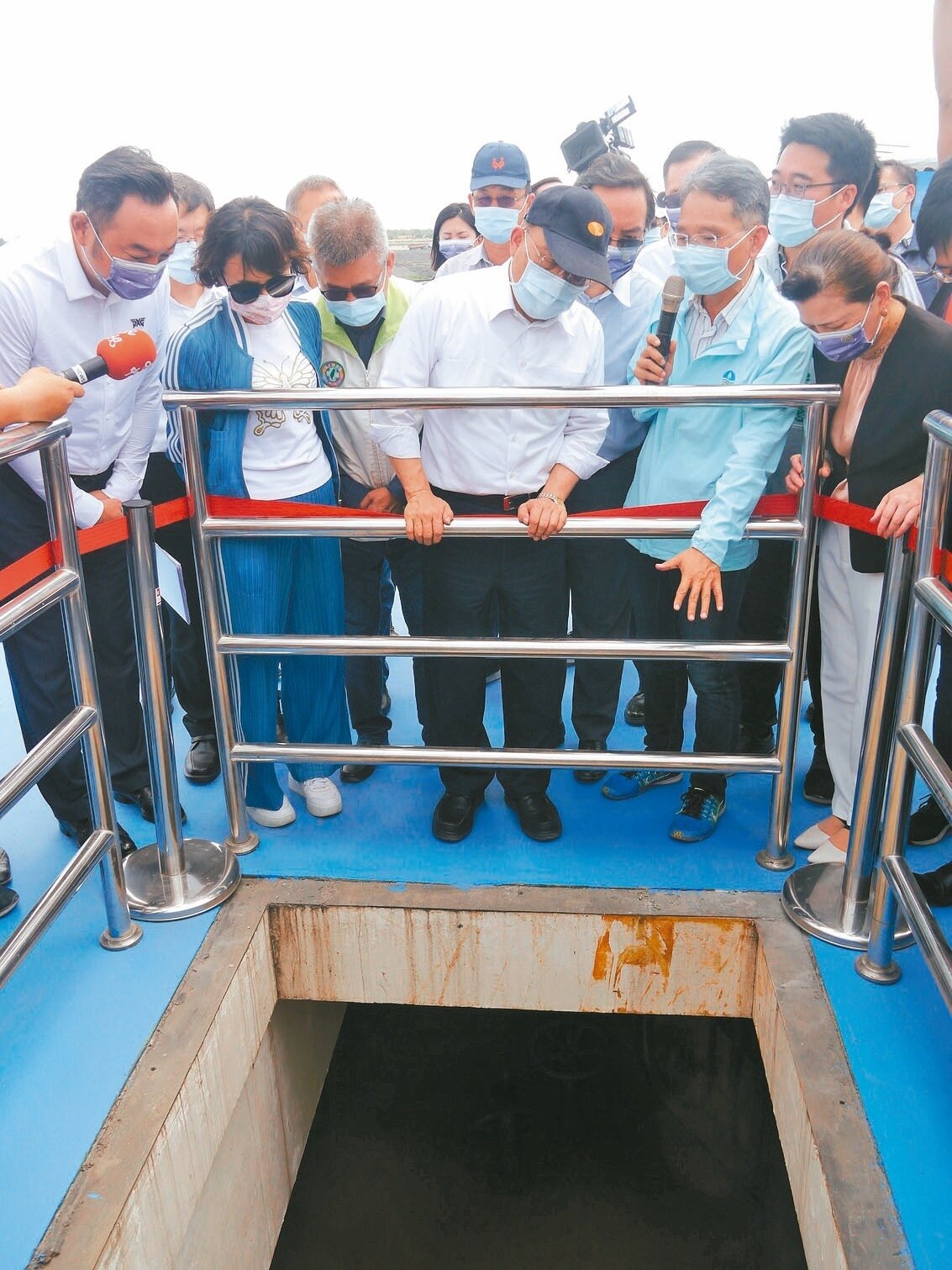 蘇貞昌說,翡翠水庫越域引水進入新北市,石門水庫可以每天挹注20萬噸到新竹;高雄伏流水工程也是前瞻計畫經費,所幸超前部署否則早就限水,前瞻曾被批評是「綁樁」,現在證明是對的。