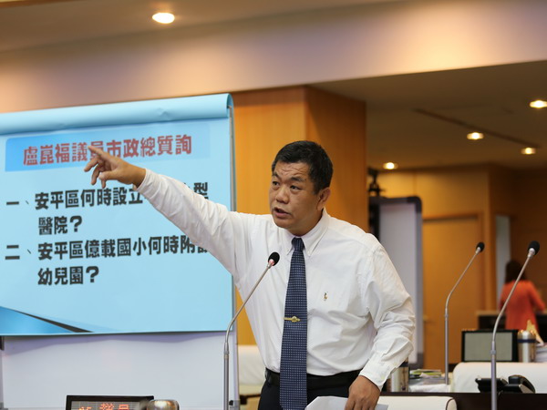 市議員盧崑福21日質詢時,先是要求市府在人口愈來愈密集的安平區設置中小型綜合醫院,以提升安平區的醫療照護品質,並針對很多安平鄉親反映擠不進公立幼兒園,要求市府增設公立幼兒園,尤其億載國小學區,涵蓋4里,近3萬人口,竟沒有半所公立幼兒園,實應早日增設,至少要讓低收戶、弱勢、勞工階級的子弟,有學校可讀。