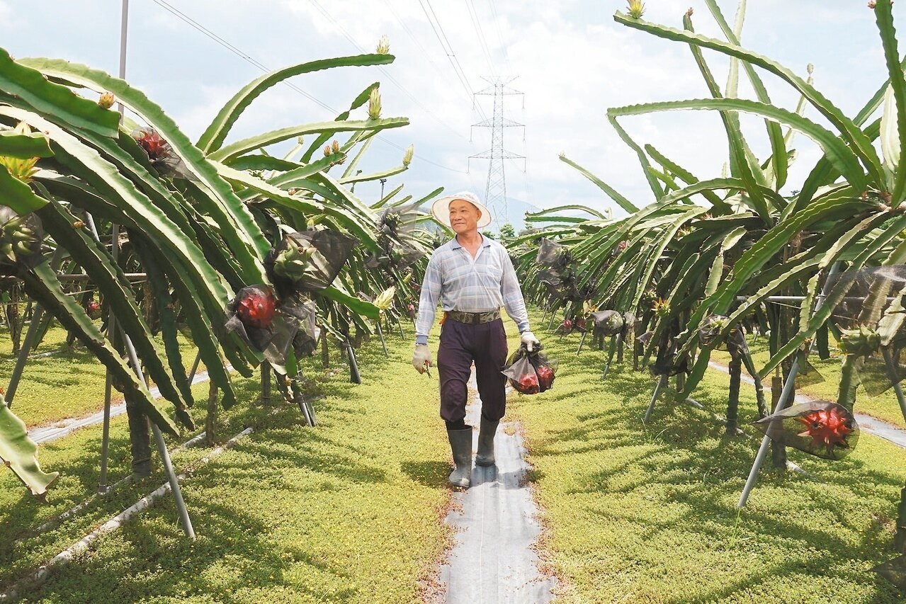 「網袋換個色,防蟲又擋紫外線」陳勝忠說,為防熟果受侵害,過去多使用綠網袋避免蟲鳥啃食,但長時間日曬易損壞,所以改用黑色抵擋紫外線護果,也降低網袋汰壞率,更吸收紅外線儲熱,晚上就像幫紅龍果蓋被,不怕低溫來襲。