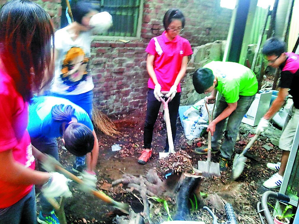 中部大學社工系的大學生在網路風聞有這群老頑童志工隊,課餘幫忙整理環境,本來要花上十天半個月的時間,年輕人加入,很快就緒,老少一起打造另類「綠川奇蹟」。