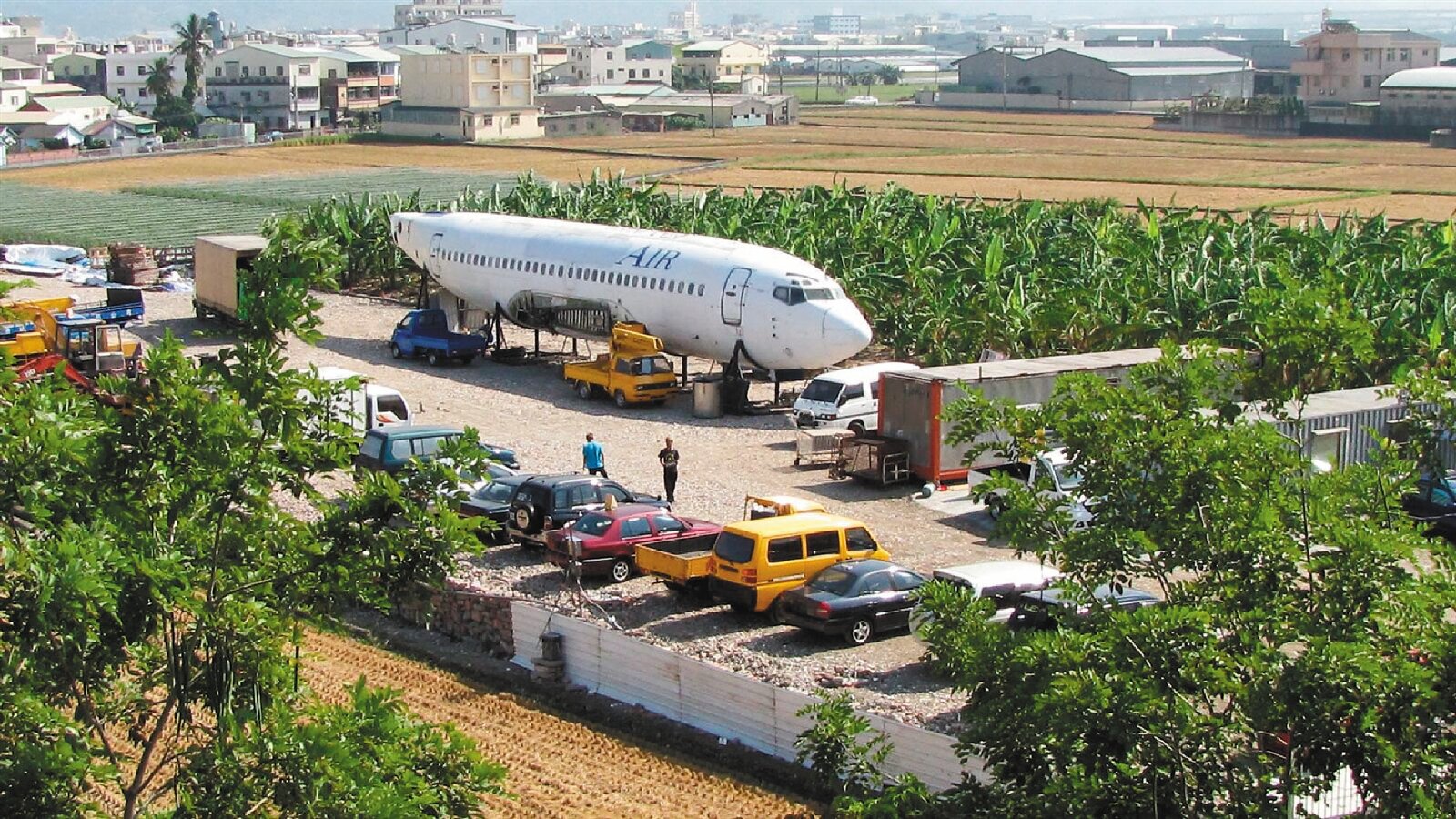 曾姓業者表示,這架波音737型客機機體是各型體型最小,因菲律賓1家航空公司倒閉,他與友人共同標購後,運回台中租用空地放置。