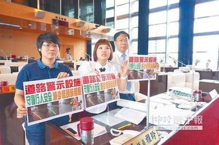 「國外在地面增設配合紅綠燈的LED光條等作法很有創意!」王義川說,這也是提升用路人安全的好方法,交通局初期先從警示牌做起,未來評估LED光條的工程技術與經費等問題。
