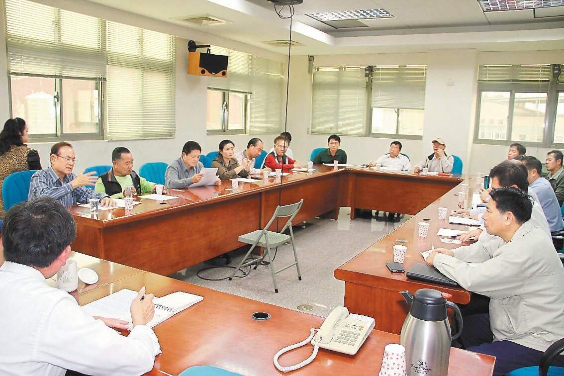 台鐵規畫把集集支線車埕往台中的班次取消,昨投縣觀光鐵道協會理事長張學郎(左2)邀台鐵代表(右1與2),水里鄉長江龍漢(左1)開協調會,強烈要求班次不能減。(記者黃宏璣攝影)