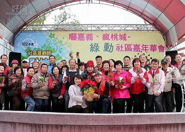 為提升嘉義市公共空間環境景觀品質,自98年度起,嘉義市環保局推動社區自主,綠美化環境營造工作,獲社區熱烈迴響,22日在檜意森活村一心二葉館舉辦「曬嘉義•瘋桃城-綠動社區嘉年華會」活動,除有102年度社區綠美化營造成果海報展示外,亦邀請50個社區發展協會及里辦公室,以動態或靜態方式展現社區特色,因環保局輔導社區,成效卓著,使得現場熱鬧非凡,人山人海。