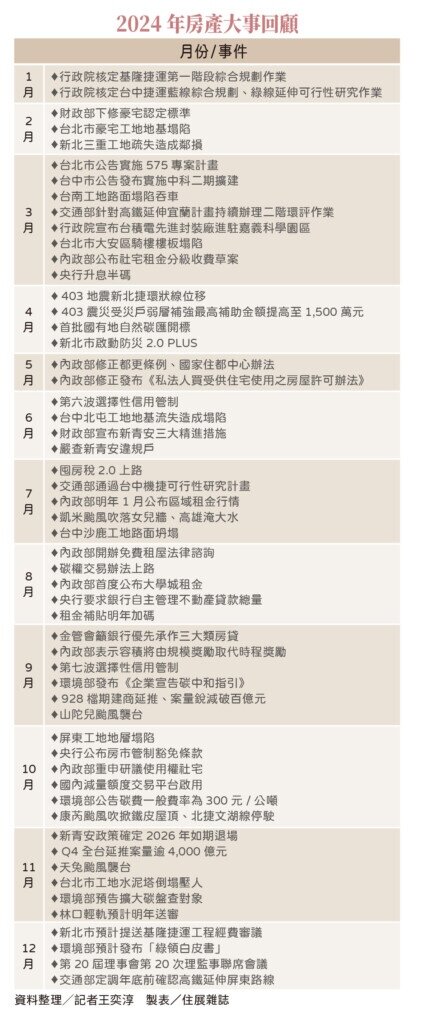 住展企研室與編輯室從嚴選本年度的55件關鍵新聞中,透過房產5大類要事,一覽今年不動產市場的脈絡。