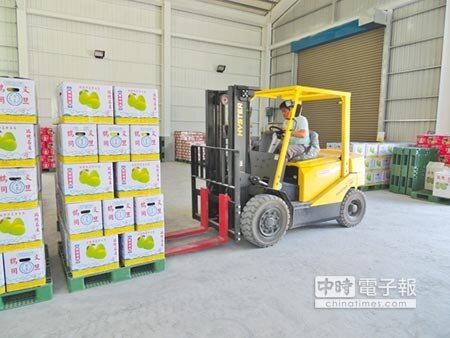 花蓮縣瑞穗鄉農會添購電動堆高機,讓24萬噸的優質鶴岡文旦好吃又環保。(截取自中時電子報)