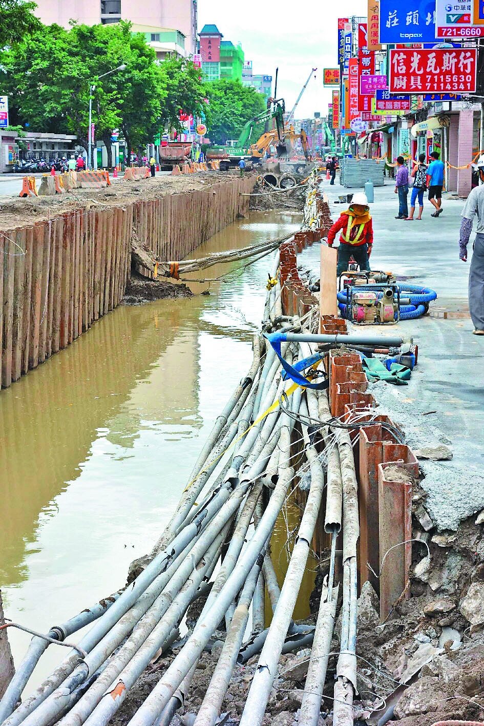 技術人員指出,三多路以南到一心路,都是由中華電信三多機房供應管線,市府養工處以及興工處工程人員在現場打鋼板樁,中華電信人員也在一旁指著管線,希望工程人員盡量小心,不要挖斷。