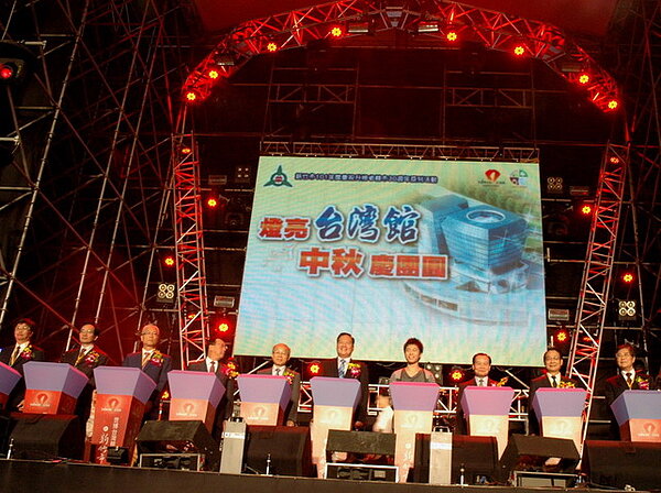 世博台灣館30晚間在新竹市正式重新點亮!當山水心燈重新啟動的那一剎那,台上台下共同歡呼,更宣告世博台灣館in 新竹市,將成為國內外觀光客「非來不可」、「非看不可」的地方。新竹市政府為了慶祝中秋佳節並宣示世博台灣館成為台灣及新竹市最新地標,30日中秋佳節舉辦新竹市101年度慶祝升格省轄市30週年系列活動-「燈亮台灣館.中秋慶團圓」,在晚會前正式點亮台灣新地標─世博台灣館。