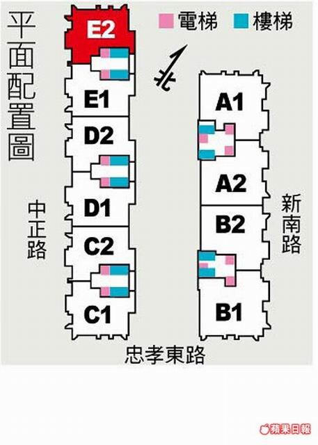 全案分A~E棟,A、B棟鄰新南路,1、2樓及地下1樓規劃大廳及社區設施,而C~E棟鄰中正路,1、2樓規劃5戶店面,各棟3樓以上均為住家,單層雙併,A、B棟每戶均規劃110坪,C~E棟每戶均規劃90坪,交屋為3房格局,空間寬闊,住戶可視需求另做隔間。