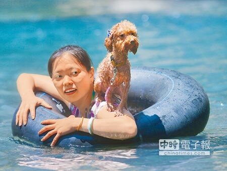 受中颱「浣熊」的沉降作用影響,全台處於高溫悶熱的天氣,板橋下午出現37.7度,創下板橋測站今年以來最高溫紀錄,有民眾帶著愛犬到郊外的野溪玩水,沁涼的溪水化解惱人的暑氣。(記者陳怡誠/攝影)