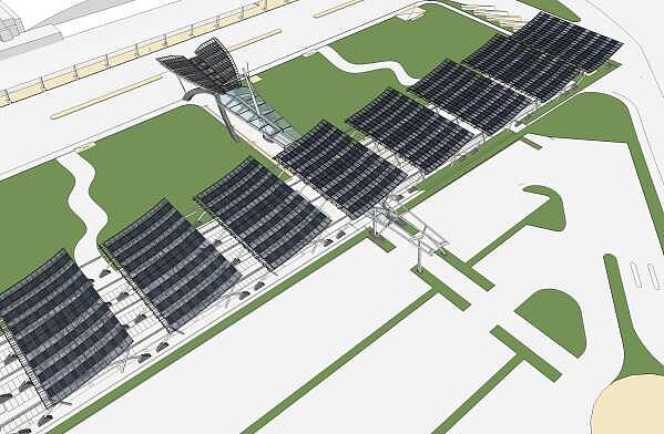 建設處表示,馬公機場前中央廊道與機車車棚太陽光電工程經費為新台幣1.5億元,設置面積4,970平方公尺,高度17公尺。該工程之造型設計主要展現本縣海浪、風帆、跨海大橋等澎湖在地意象,從飛機上俯視則有如一架滑翔機,其飛翔之意象並與馬公機場相互呼應。