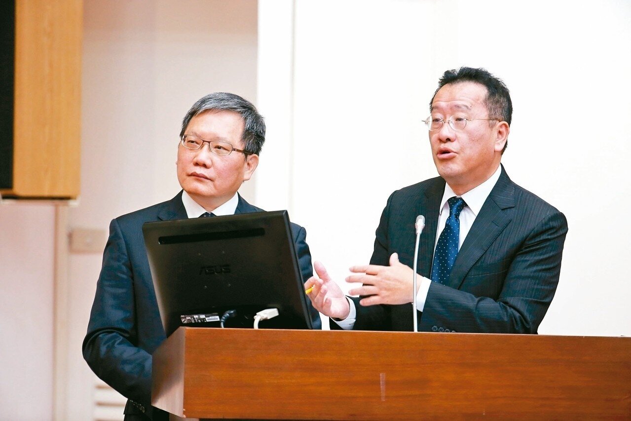 財政部長蘇建榮(左)和金管會主委顧立雄。 記者邱德祥/攝影