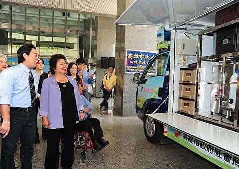為提供偏遠地區身心障礙朋友參與社會活動,全臺首輛「身心障礙者多功能行動服務車」正式亮相啟用。高雄市長陳菊表示,服務車巡迴於大旗山、內門、美濃、杉林、六龜、茂林、桃源及那瑪夏等偏鄉地區,減輕身心障礙者的壓力,提供更多元完善福利及服務。