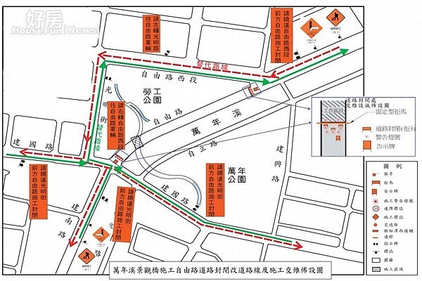 包括建國路往東至自由路之車輛,請改道行光明街到自由西路接自由路。建南路往北至自由路之車輛,建議改道建南路到建國路再到光明街接自由西路。建國路往西至自由路之車輛,則建議由建國路轉至復興路。因道路封閉造成用路人不便之處,縣府也請市民共體時艱。