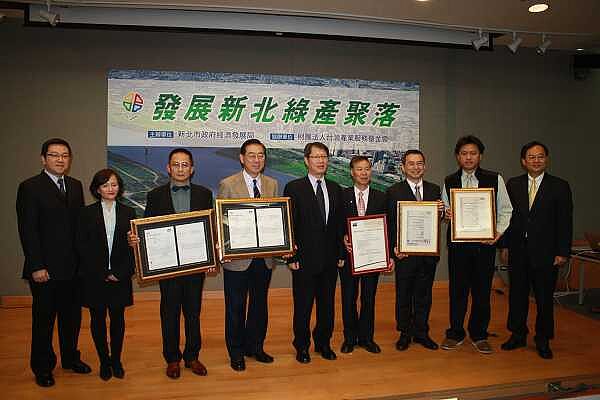 新北市政府經發局21日舉行「發展綠產聚落」發表記者會,除公開闡明「綠產發展」、「綠能應用」、「清潔生產」及「碳足跡盤查」四大施政主軸外,並展示今年推動「清潔生產」與「碳足跡盤查」成果及舉行碳足跡盤查授證儀式,邀請各界各業共同將新北市打造為低碳示範城市。