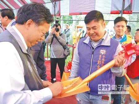 動土儀式的金鏟子大受歡迎,民眾紛紛排隊請市長鄭文燦(左)簽名助孕。(邱立雅攝)