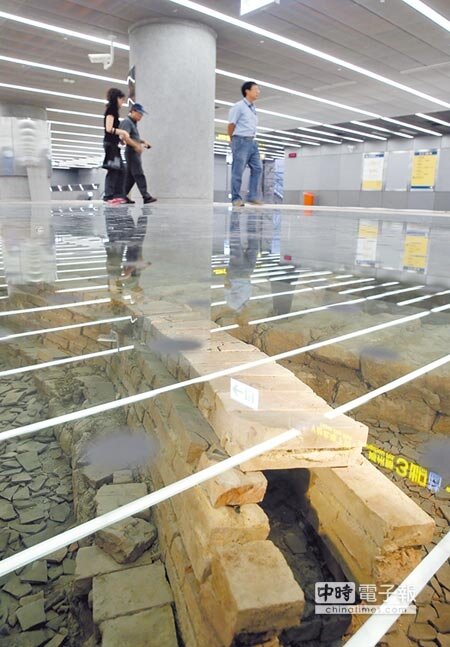 北門站興建時發現大量歷史遺跡,經過考古發掘後,設計了12個地板透明展示井。