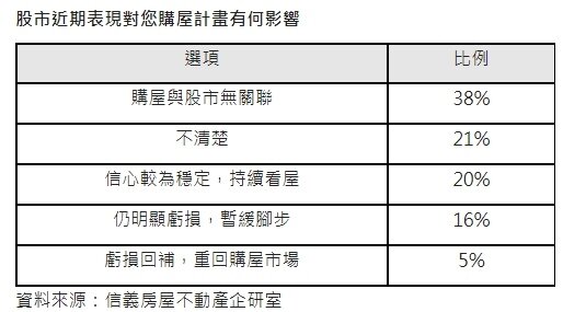 ▼多數民眾認為購屋與股市無關聯。圖/信義房屋提供
