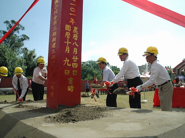 三期校舍新建工程動工,新建活動中心(包含地下一層及地上三層)及運動場,工程總造價計新台幣1億元,包括入口意象、人行動線、活動空間及綠色軸線等,延續校舍暨有多層次、豐富的學習環境,而負責設計規劃的建築師說明將設立全市第一座室內手球場,協助推廣球類運動。地方居民及學生們熱烈歡慶學校大事,校內太鼓隊及棒球隊先後表演節目,表達喜悅之情。