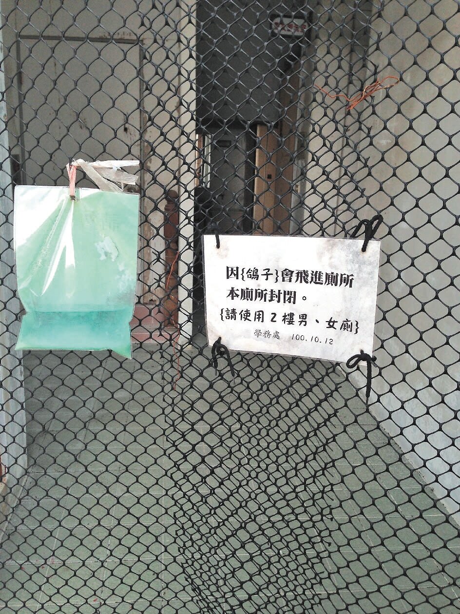 不料2年半前,學校1樓廁所竟被學生發現有鴿巢,而且還有女學生如廁時,被突然竄出的野鴿嚇壞,校方因擔心學生遭野鴿攻擊受傷,2年前才將1樓廁所封閉,並請師生到2樓廁所如廁。