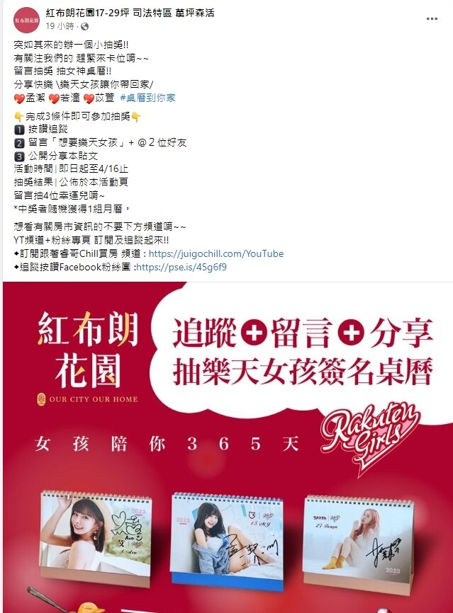 無獨有偶的是,建案刺激買氣推出吸睛活動,類似案例不只一樁,例如茂德建設在土城的「紅布朗花園」,建案找來樂天女孩聯名合作,打出抽獎送桌曆活動,此外桃園中壢的「偉築新豐洲」,同樣搶搭世界棒球經典賽風潮推出應援中華隊活動,截至3月18日為期兩天在接待中心免費贈送200份雞排外加珍奶,希望替房市買氣注入強心劑。