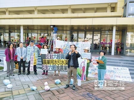 台灣水資源保育聯盟常務理事吳麗慧指出,六輕將興建農水引水渠道搶農業用水,會加劇雲林彰化地層下陷,要健康婆婆媽媽團執行長顏淑女說,六輕已取得土地,依環評法規每日17萬噸以下引水道不必環評,縣府一定要駁回引水道興建案。