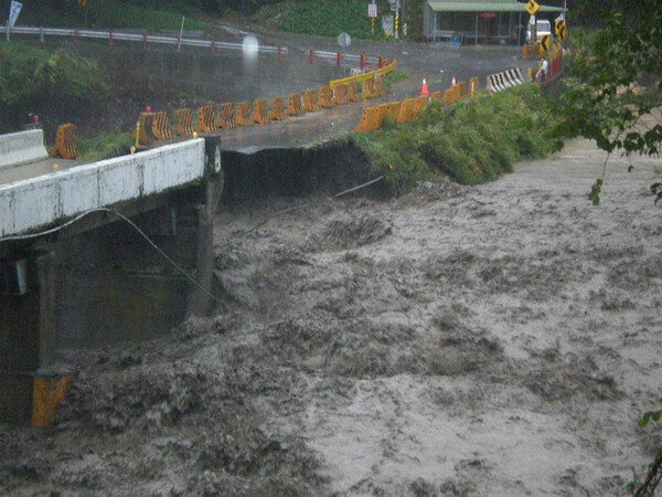 蘇拉颱風侵襲東北部及中部山區,台七甲線指標五十公里、勝光派出所旁一百公尺處張良橋路墩,二日上午被大雨沖刷造成橋頭引道處塌陷,所幸員警巡視發現,立即封路(橋)及緊急通報,並調派員警進行道路管制,以維安全。