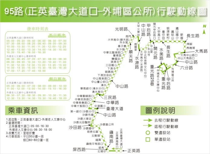日前,台中市公共運輸處函覆說明指出,此案經台中市市區汽車客運審議委員會審議通過,在不影響原有服務水準下,新增副線「正英台灣大道-外埔老人文康中心(經大馬路-甲后路-水美路)」,俟業者籌備完成後即可上路營運,預計於今年7月1日通車。
