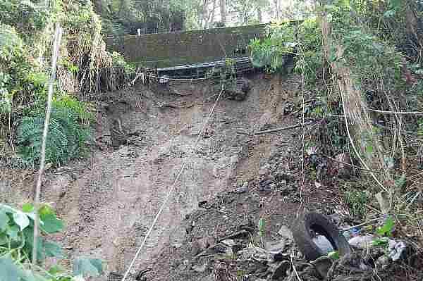 附近木棧步道受流失路基影響有所損壞暫時無法通行。