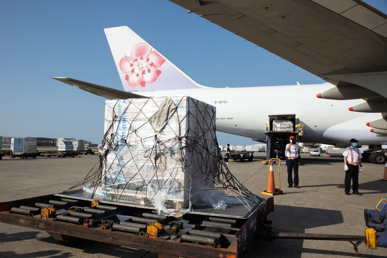 第五批採購莫德納疫苗近10萬劑,8日下午由華航貨機運抵桃園國際機場,因數量不多,仍無法解決目前疫苗荒困境。記者季相儒/攝影
