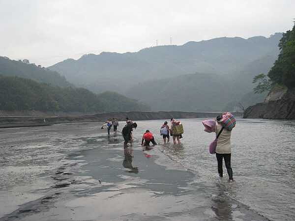 石門水庫上游的義興及羅浮等已出現缺水情事,許多民眾可下水庫旁行走。(記者陳寶印攝)