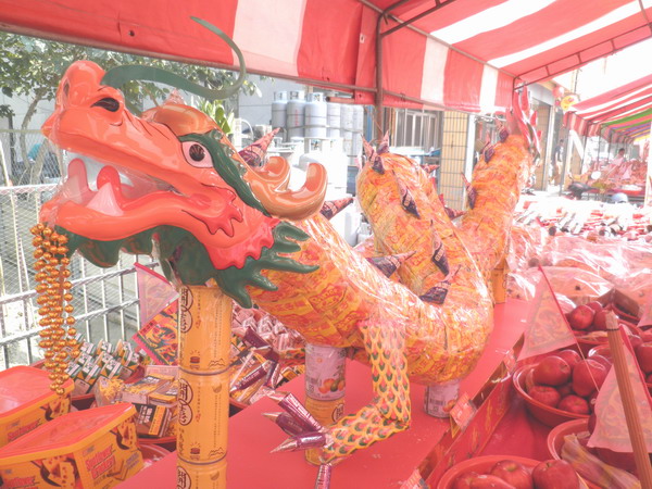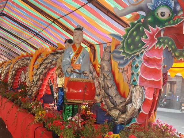 佳里區新生路的普度場,由大主會首斥資設置虱目魚龍,以約1500尾虱目魚鋪設而成,相當壯觀。延平路第十七角的普度頭以雙搶珠入鏡,非常好看。經營廟宇祭祀禮品業的出巡部部長謝明助,則以王子麵、科學面製作麵龍,以麵線、糖果等製作成龍的造型。