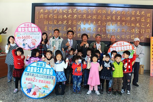 鎮公所社會課長黃芳梅指出,幼童保久乳原本預計每週供應5天,以每瓶14元2900人計算,須1千萬左右,考量財政,改為每週供應2天,經費為422萬左右;婦女生育津貼從3000元增加到6600元,以850人估算,約須561萬;65歲以上長者加發端午節禮金,每人500元以10100人估算,須500萬左右。