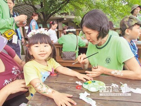 現場還有桐花彩繪,大小朋友都玩得不亦樂乎。(記者葉德正攝)