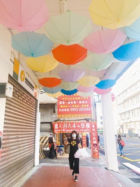 觀銷處長曾姿雯表示,為讓經過民眾不再被襲擊,利用繽紛多彩的雨傘裝飾騎樓天花板,讓經過的遊客或等車的民眾可以停下腳步,抬頭欣賞並拍張打卡。