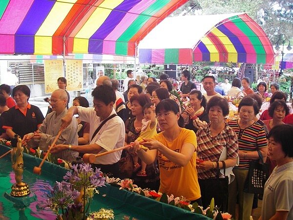 清水岩寺管理委員會總幹事陳慶福表示,除浴佛儀式之外,本次活動還有素食品嘗活動,共計有24多個素食攤位提供各式各樣素食讓民眾享用。