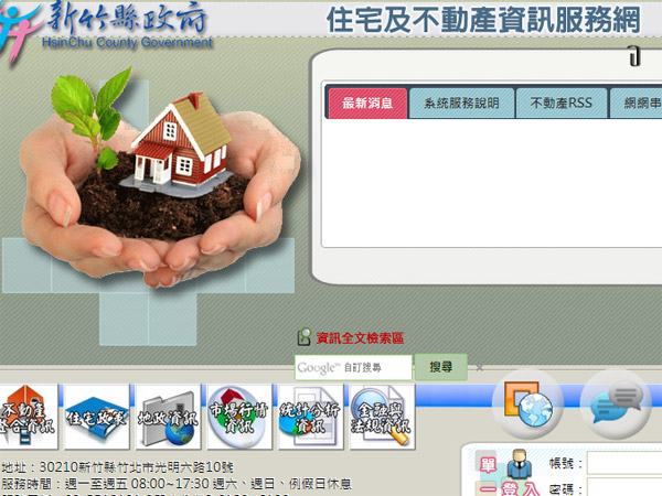 「新竹縣住宅及不動產資訊系統建置服務網」成果發表會10日在縣府一樓大廳舉行,將提供民眾一個公開、公平以及完善的住宅與不動產資訊系統,用以提供都市發展規劃與管理、民眾與不動產業者最新且完整的資訊平台,歡迎民眾善加利用。