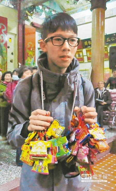 其中也不乏年輕人前來參與,就讀大學餐飲系的蘇姓男學生因喜歡收集各廟宇的紀念吊飾,走遍全台各地,目前已蒐集超過百個。昨日蘇同學和朋友前往東山碧軒寺,除了收集吊飾外,首次體驗跟著轎班從東山走回關子嶺碧雲寺。