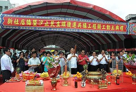 市長朱立倫親臨主持汐止區新社后橋暨汐止民生線捷運共構工程動工典禮。(記者黃村杉攝)