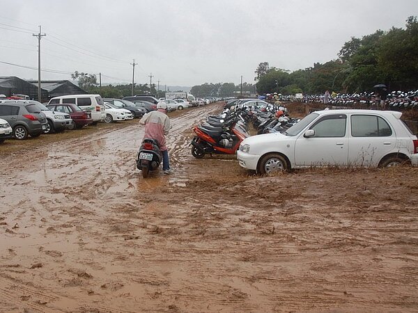 新社花海節去年被連續三個禮拜的大雨打亂,導致停車場泥濘不堪,賞花客怨聲載道。(圖/檔案照片)