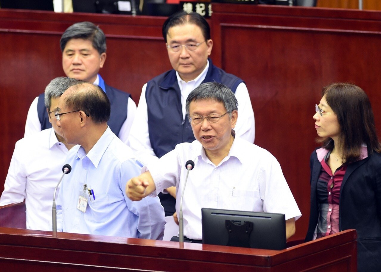 台北市議員簡舒培在市政總質詢時播放錄音檔,直指現任捷運公司董事長李文宗多次召開會議喬蛋,柯文哲聞言大怒。記者徐兆玄/攝影