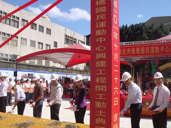 市長朱立倫26日親自主持新北市第七座板橋國民運動中心開工動土典禮,立委林鴻池、江惠貞及市議員周勝考、曾煥嘉、劉美芳、張宏陸、王淑慧、廖裕德、陳科名等人到場觀禮。朱市長說,全世界所有先進城市都有國民運動中心,目前台北市12座都已建設完成,新北市在升格後也急起直追,第一座在新莊今年底就要正式啟用,板橋是第七座、也是今年第六座動工的運動中心,希望在103年底前能完工啟用。